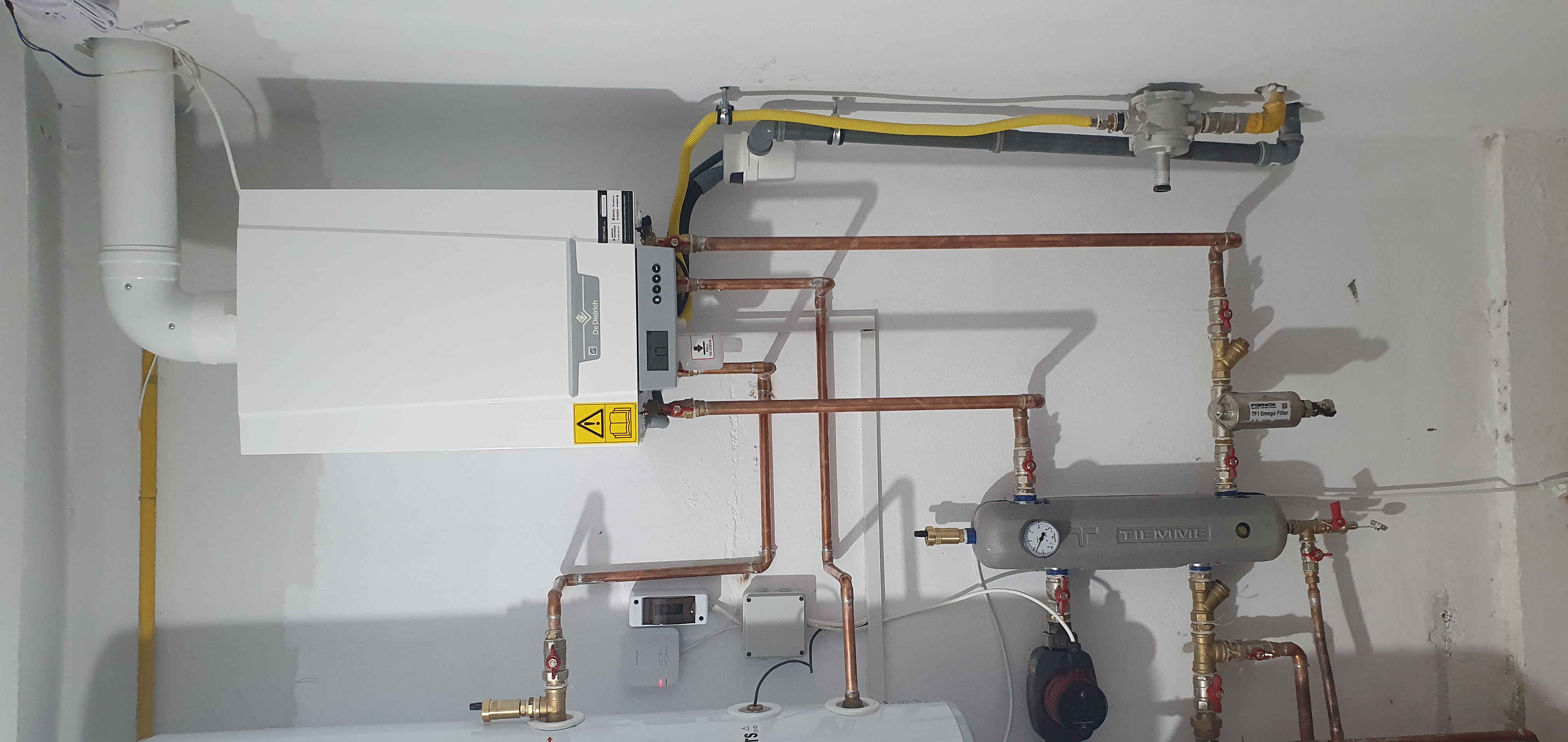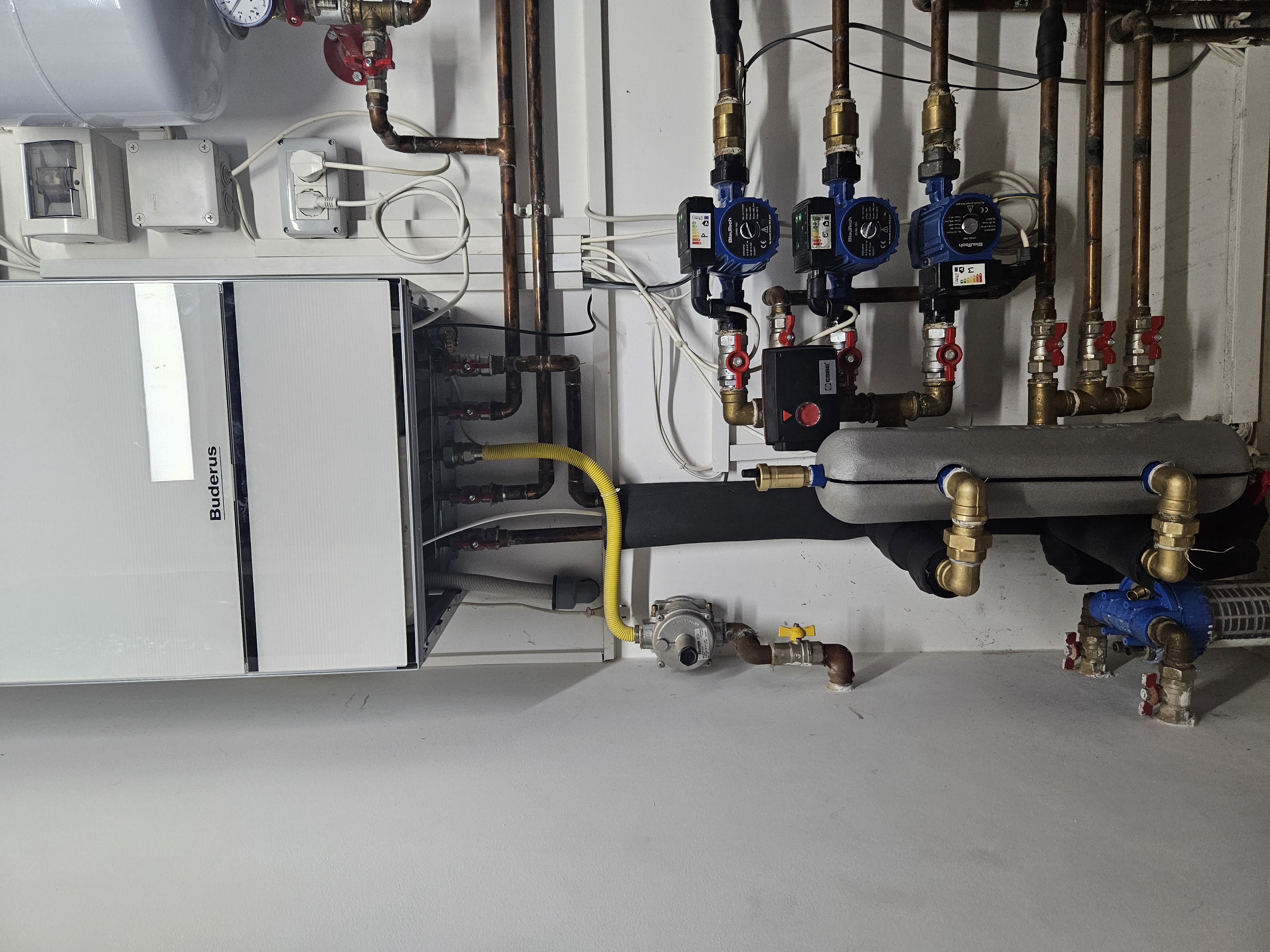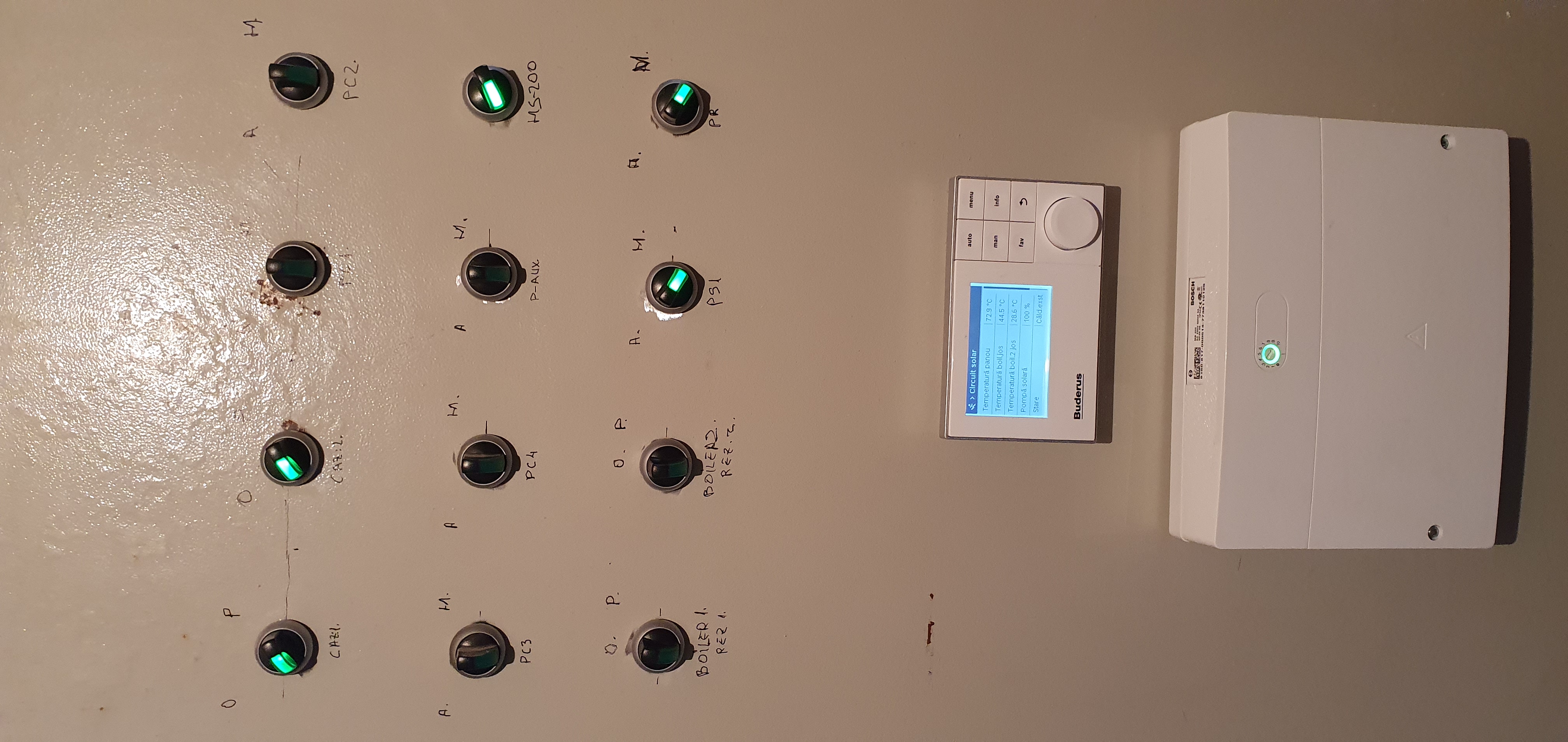 Punct termic cu combinație de cazane (condens GB112-43kW, cu cazan pe lemne în gazeificare S151-40kW)