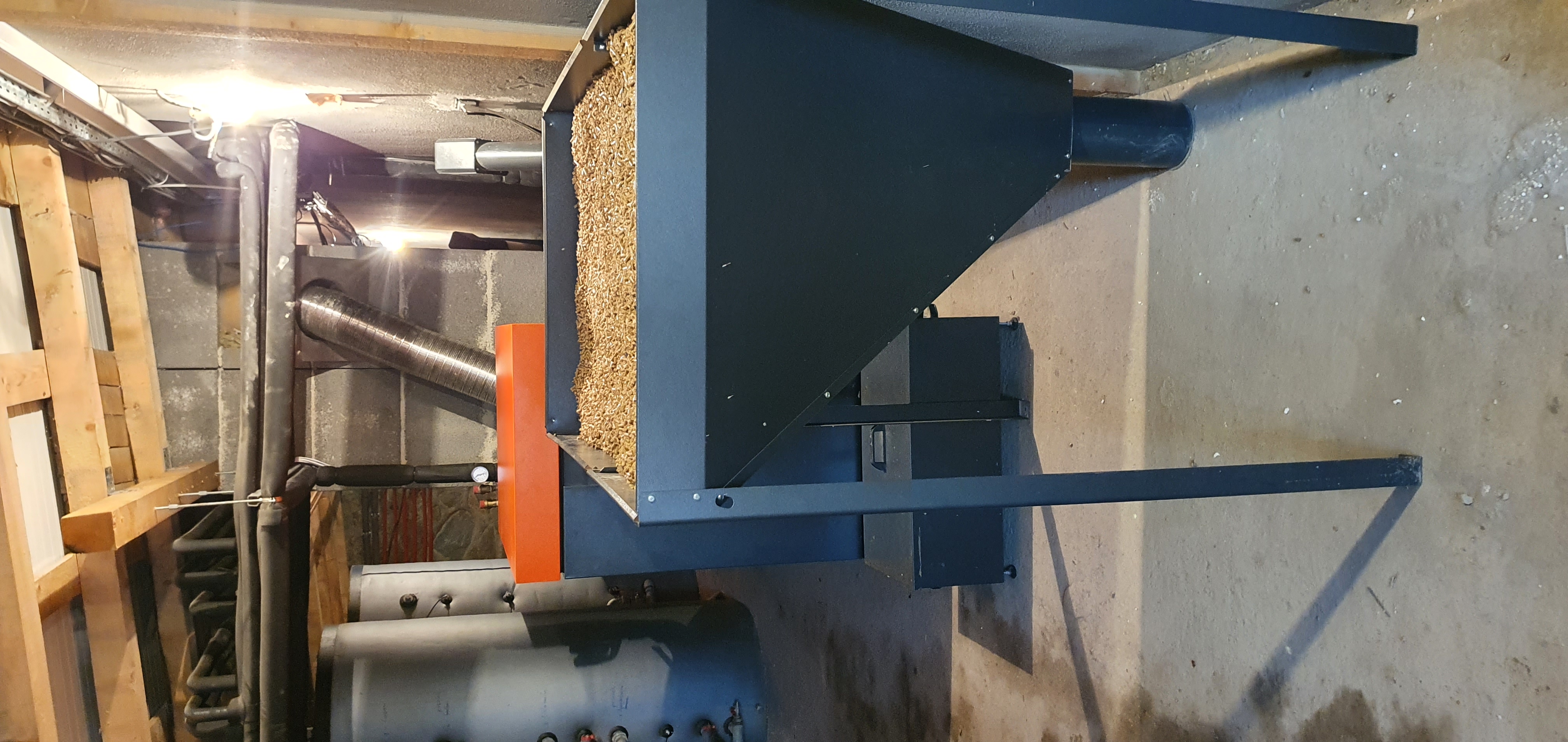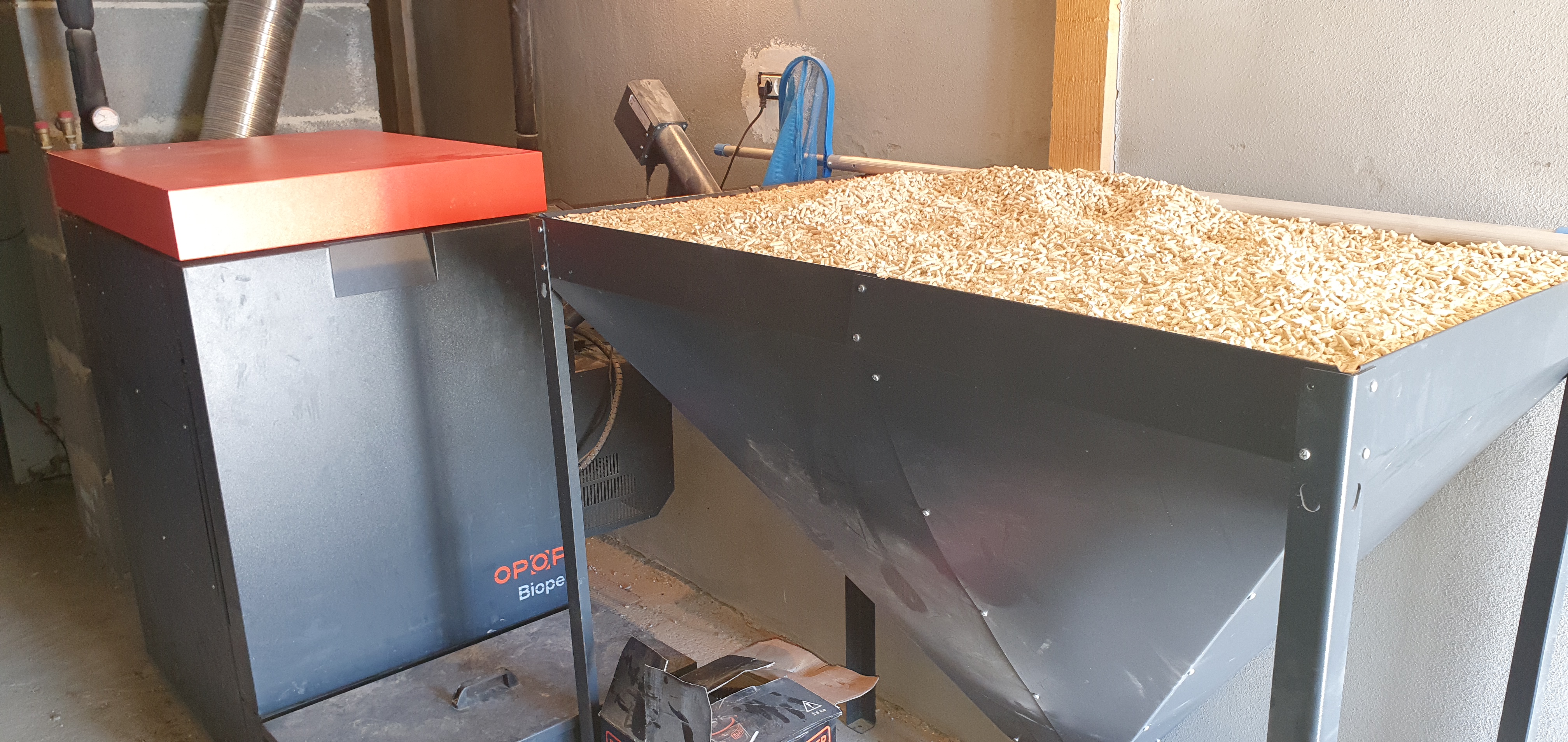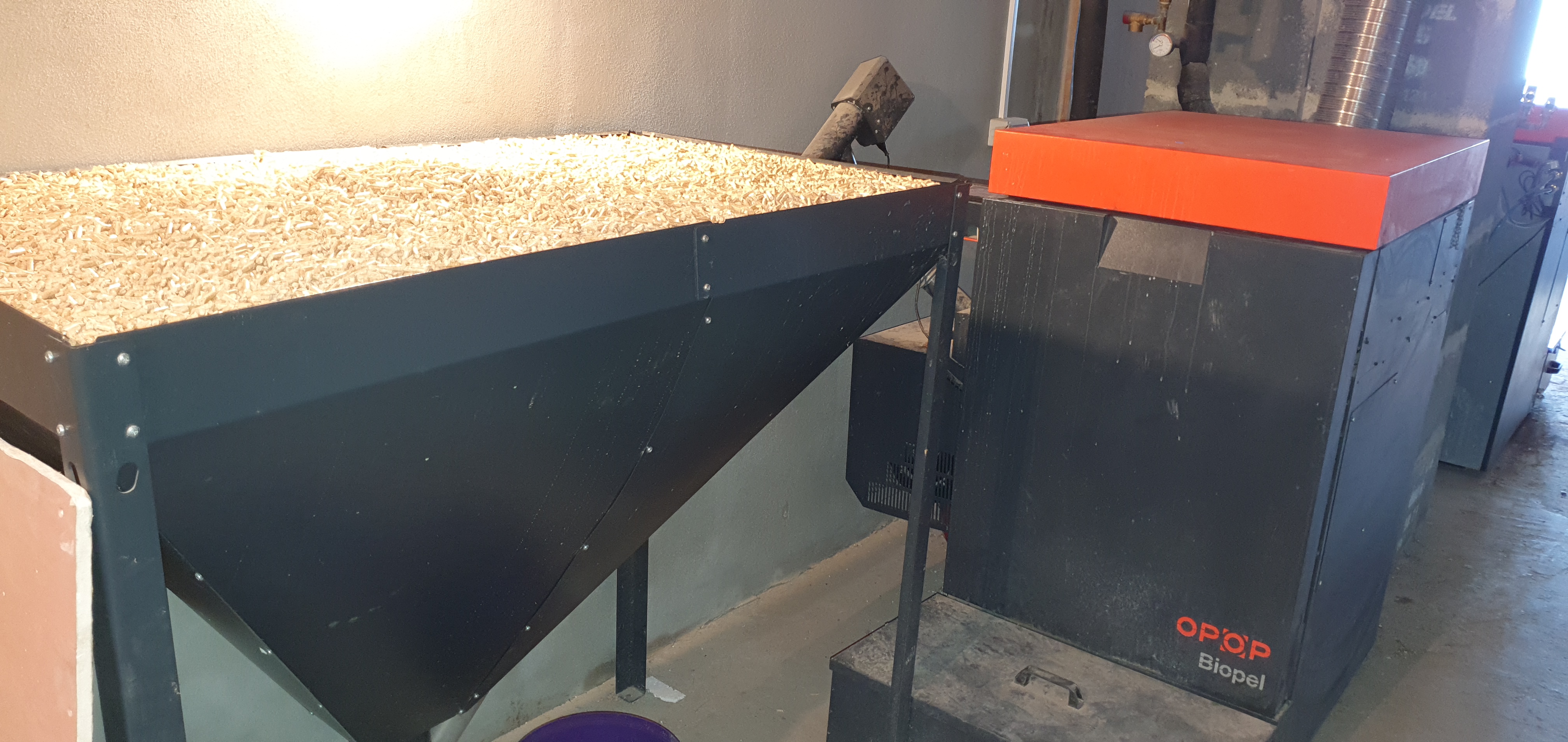 Punct termic cu controlul cazanului realizat prin internet. Cazan pe peleți OPOP Biopel de 30 kW + buncăr extins