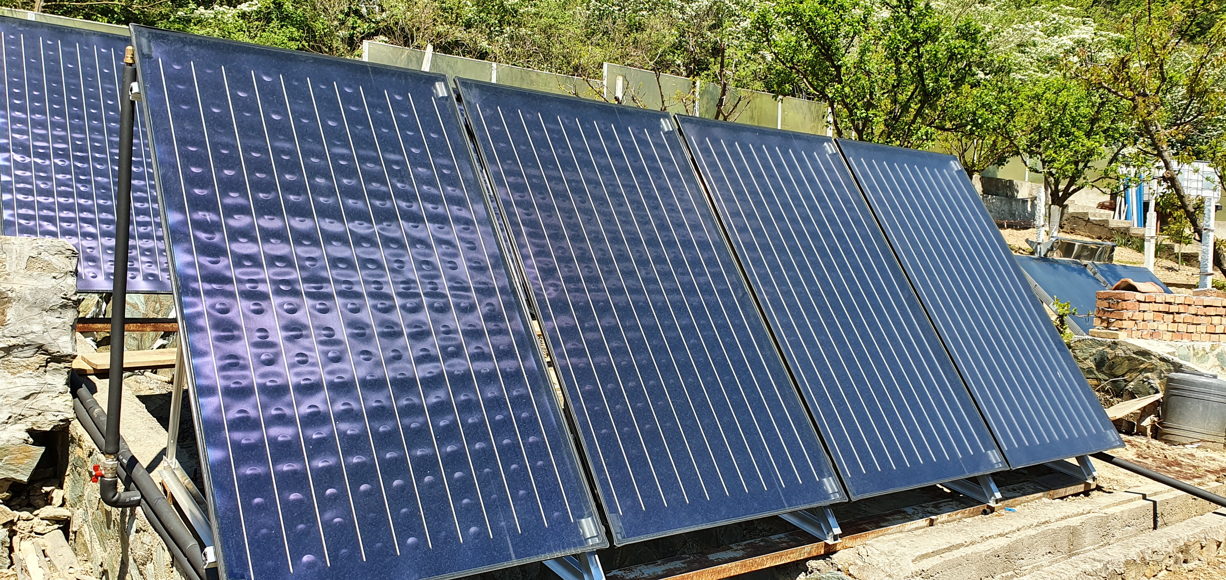 Instalație solară cu 6 panouri plane SKT, pentru preparare de ACM și aport la încălzire