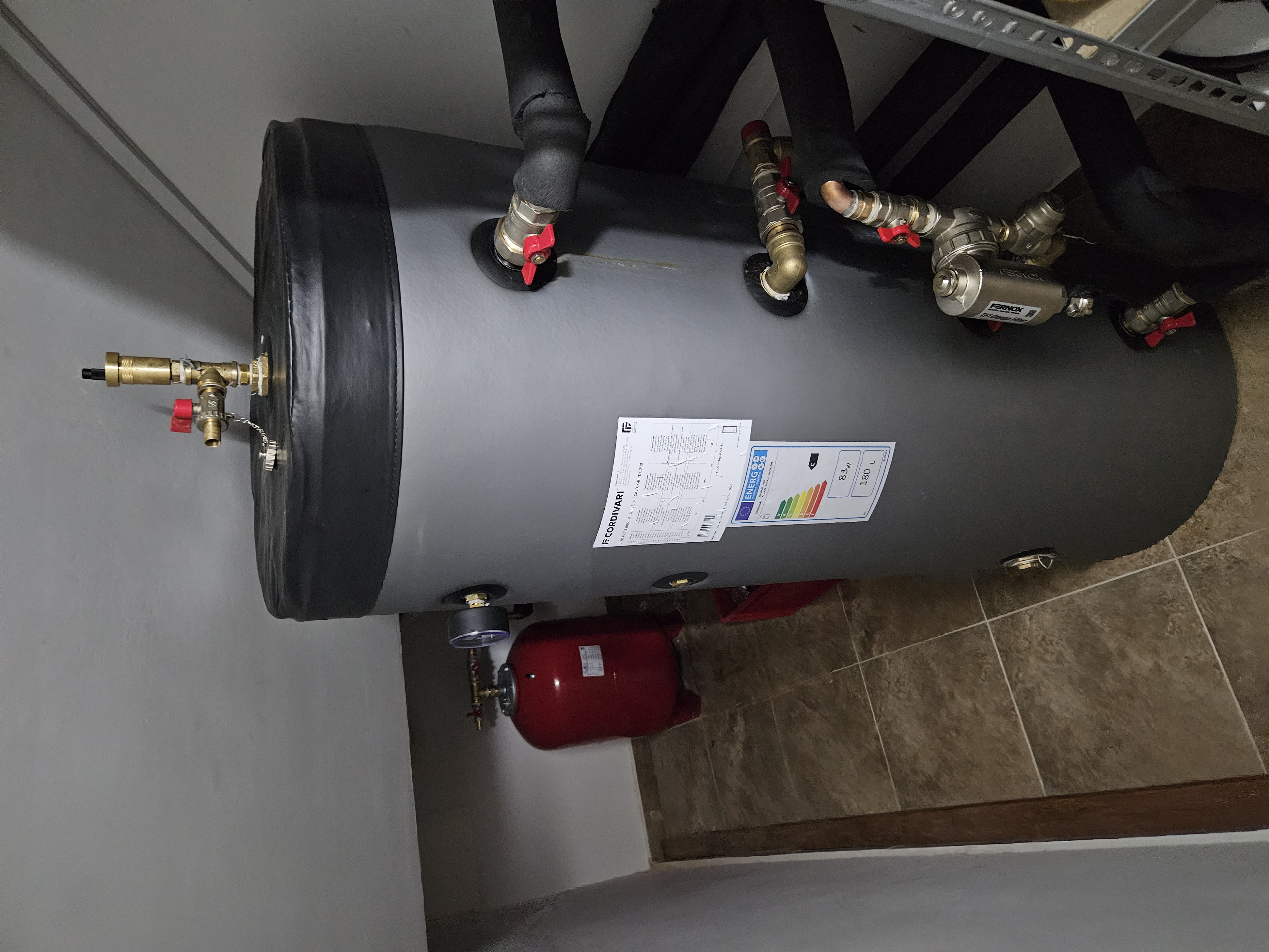 + boiler tampon + 3 circuite termice (două mixate , unul nemixat) + 2 panouri solare plane SKS.